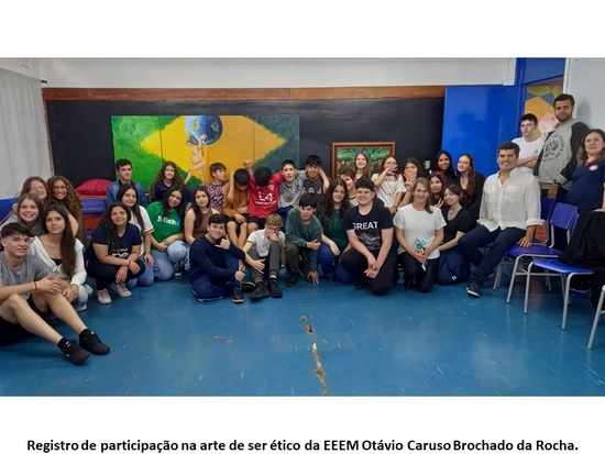 Para ilustrar uma tarde com suas obras e experiências vividas, Paulo Gobo aceita intervir no projeto “A arte de ser ético”, desenvolvido dentro da área das Ciências Humanas e Sociais Aplicadas, na Escola Estadual de Ensino Médio Otávio Caruso Brochado da Rocha, com participação de estudantes dos 8º e 9º anos do Ensino Fundamental e da 1ª Série do Ensino Médio e das equipes pedagógica e diretiva da escola.